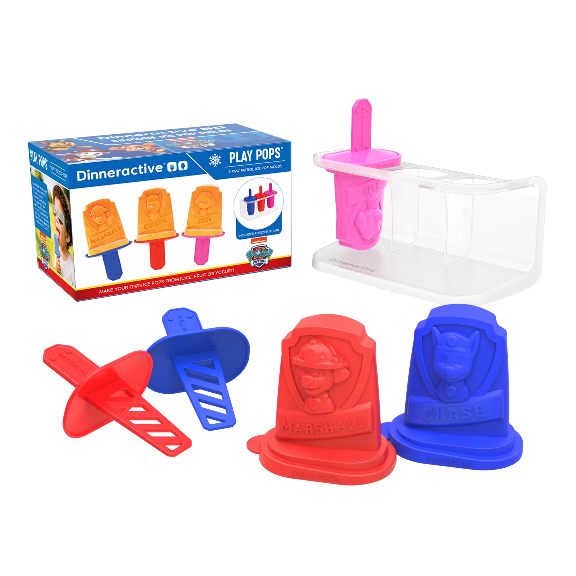 - Includes 1x stand, 3x plastic stick/handles, and 3x ice pop molds (1x "Skye" character, 1x "Marshall" character, 1x "Chase" character) with a 3oz volume in each (9oz total)